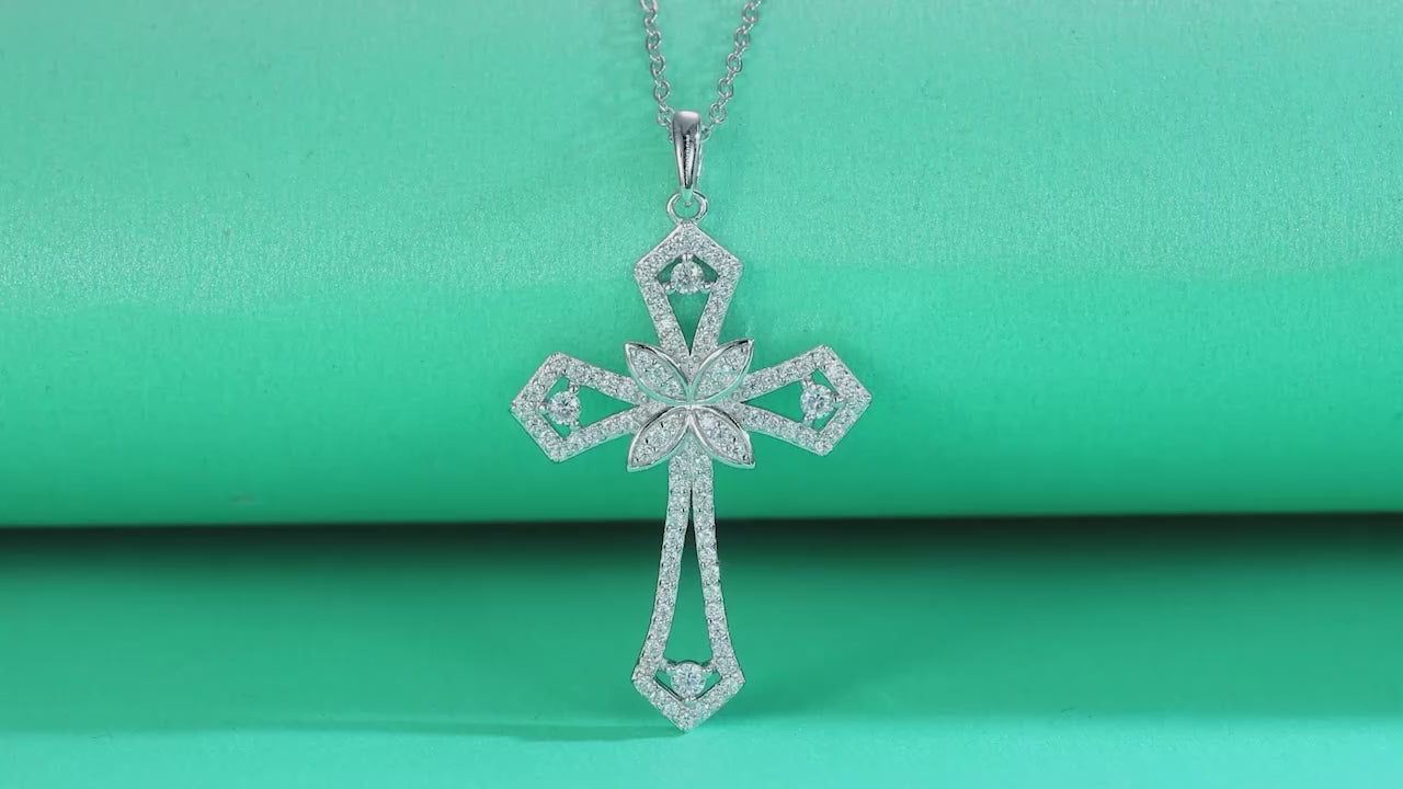 A silver cross blooms with diamond petals, channeling divine grace and quiet rebellion—its intricate halo sparkles like starlit vows, framing your spirit in ethereal light. Adjustable chain for flawless layering. Divine destiny calls—seize this heirloom glow now.