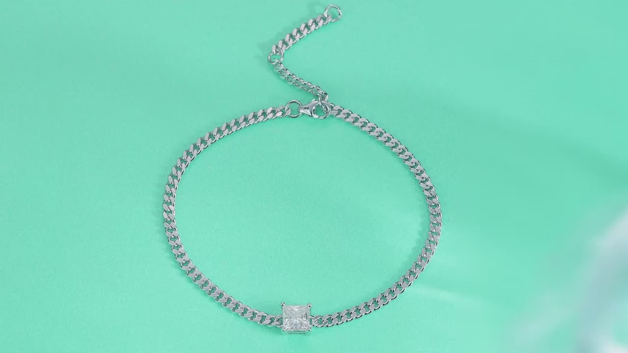 Link your story with subtle shine in our Square Sparkle Chain Bracelet—a sleek silver chain with a centered square moissanite...