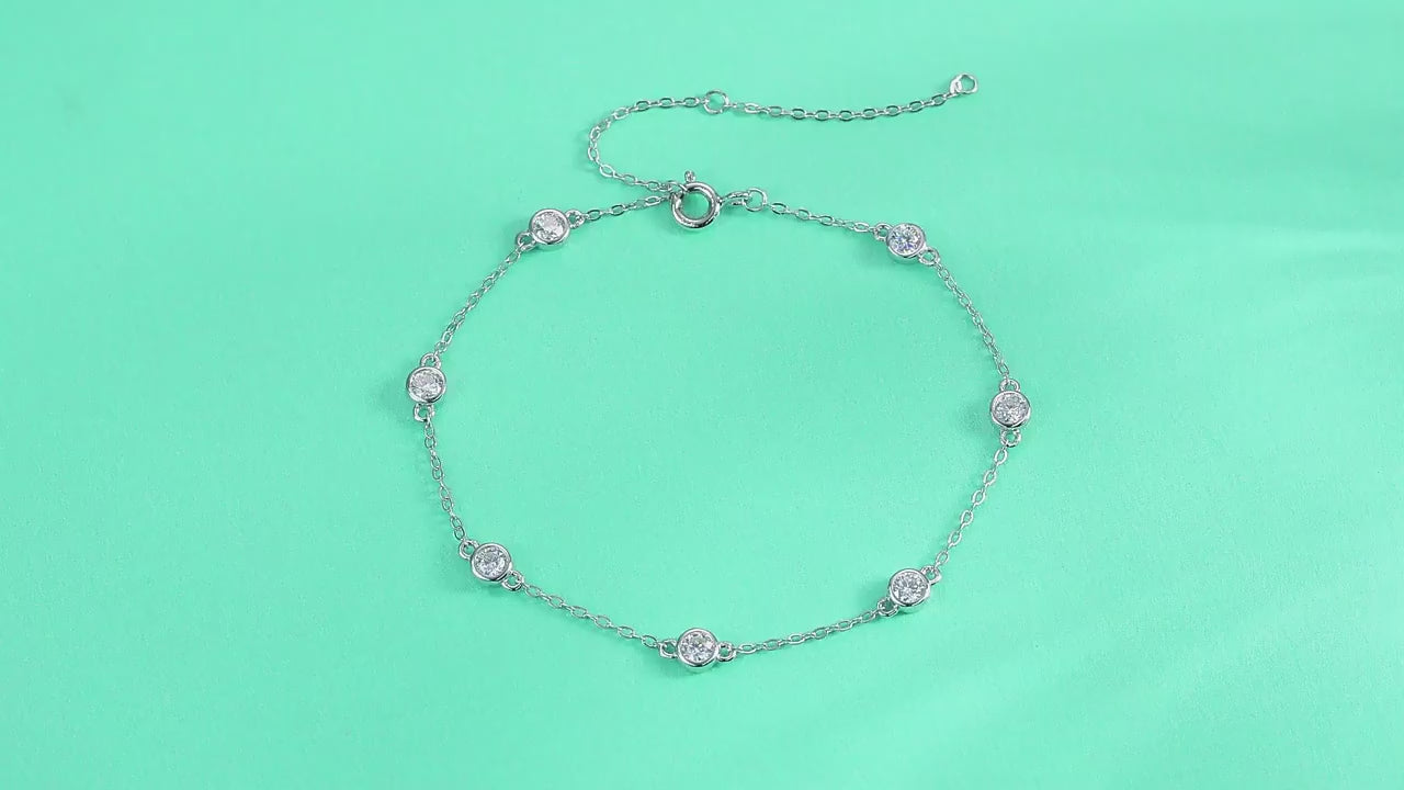 Illuminate your wrist with subtle stardust in our Starlit Bezel Chain Bracelet—a delicate silver chain adorned with petite bezel-set moissanite that twinkles like scattered stars, your gentle guide for life's bright days and quiet nights. Handcrafted in premium sterling silver with ethically sourced moissanite for flawless, fade-proof sparkle and all-day...