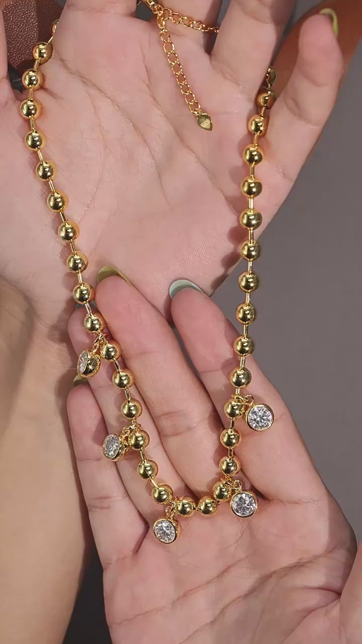 Sparkle through life's ups and downs with our Beaded Twinkle Dangle Necklace—a double layer of golden beads with playful dangling...